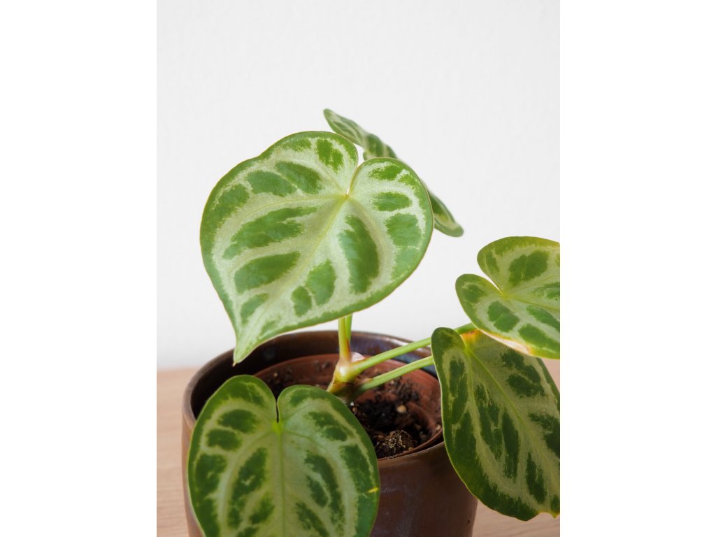 Anthurium je rod rostlin z čeledi Araceae, který zahrnuje více než 800 různých druhů a je původem z tropických oblastí Ameriky. Tato rostlina je známá pro své výrazné a atraktivní květy ve tvaru srdce, které jsou často jasně červené, růžové nebo bílé barvy. Anthurium rovněž zahrnuje druhy s okrasnými listy. Kromě atraktivních květů jsou některé druhy Anthuriumu také ceněny pro jejich výrazné a dekorativní listy. Tyto druhy jsou oblíbené mezi sběrateli a milovníky pokojových rostlin pro svou unikátní estetiku. Jejich listy přidávají do interiéru zajímavé textury a barevné akcenty, což činí z Anthuriumu atraktivní a dekorativní rostlinu i bez přítomnosti květů.